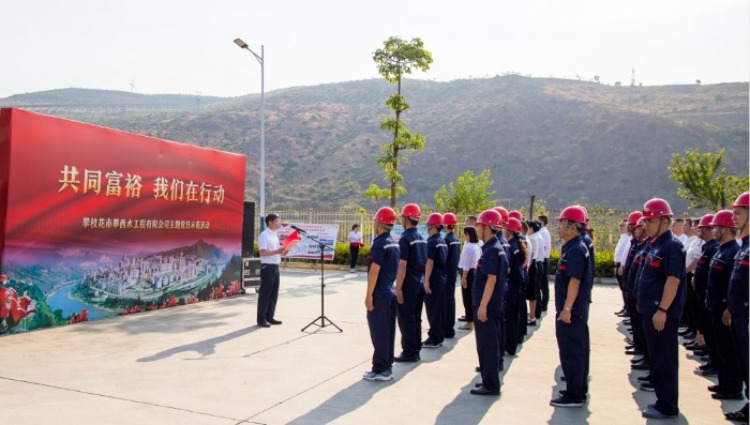 4月26日,集團公司攀西水工程有限公司黨支部,在馬店河水廠(chǎng)光伏發(fā)電項目建設現場(chǎng)組織開(kāi)展了“共同富裕 我們在行動(dòng)”主題黨日示范活動(dòng),凝聚拼經(jīng)濟、搞建設、抓項目、促發(fā)展的信心和力量,以更加飽滿(mǎn)的精神狀態(tài),為我市“共同富裕”試驗區建設貢獻力量。